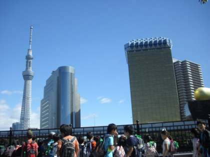 ガスの科学館では、一クラス一人ガイドさんが付き、館内を案内してもらい、ガスについてたくさん学ぶことができました。浅草では、隅田川沿いを散策し、スカイツリーを間近で見ることができました。