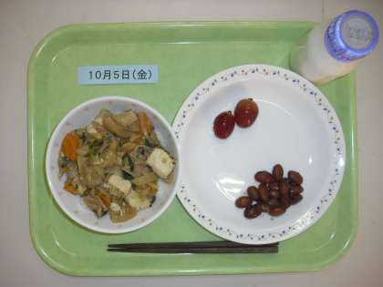 今日の給食は、すき焼き丼・牛乳・煮豆・フルーツ(甲斐路)です。