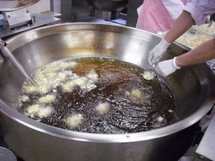 大豆とコーンのフリッターは、1つずつ生地をスプーンで落として、かき揚げのように揚げていきます。