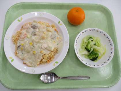 ・キャロットライスのシーフードクリームソースかけ