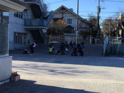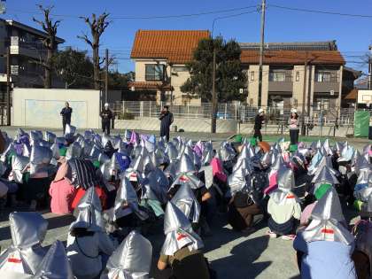 大人が周りにいない状態でも、落ちてこない・倒れてこない・移動してこない場所でランドセルで頭を守ったり、机の下に入って身を守ったりする姿がみられました。