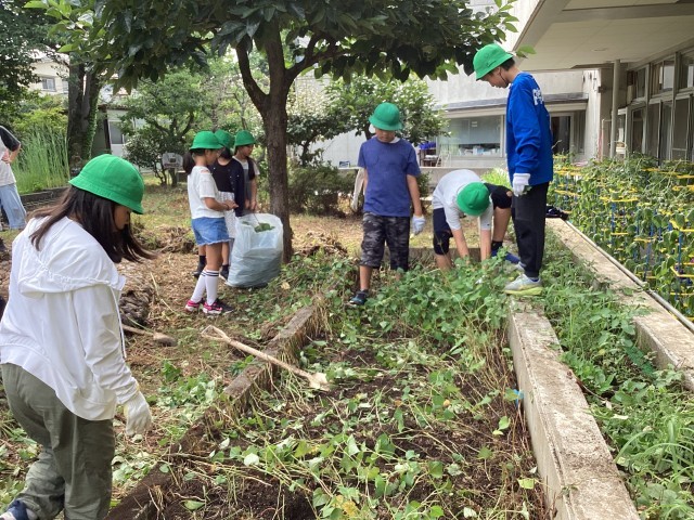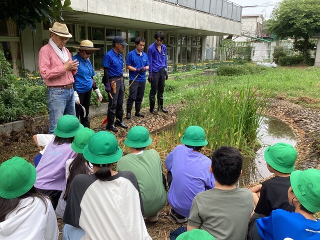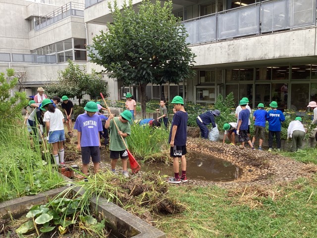 学校支援コーディネーターの大江さんのご協力のもと、栽培委員会の活動の一つとして「おたまが池再整備プロジェクト」を始めました。今年度は、おたまが池周辺ばかりでなく、おたまが池そのものの手入れを数年ぶりに行っています。栽培委員会の子どもたちは主事さんとともに、張り切って活動していました。トンボのヤゴやメダカが生息し、野鳥が集まるオアシスになればよいです。