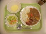 今日の給食は、カレーライス、福神漬、キャベツサラダ、りんご、コーヒー牛乳です。 ...