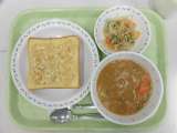 今日の給食は、アーモンドトースト、ポークシチュー、こんにゃくサラダ、牛乳です。 ...