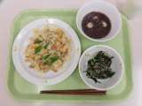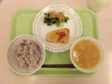 今日の給食は、とりめし、ほうれん草の乾物あえ、白玉しるこ、牛乳です。 白玉しるこ...