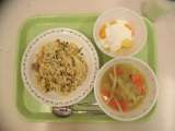 今日の給食は、高菜チャーハン、ヌードルスープ、フルーツヨーグルト、牛乳です。 今...
