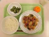 今日の給食は、ごはん、揚げ煮、きゅうりの中華味、ぽんかん、牛乳です。 揚げ煮には...