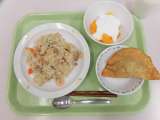 今日の給食は、えびチャーハン、ツナにらぎょうざ、フルーツヨーグルト、牛乳です。 ...