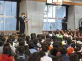 社会科見学で出かける5年生を見送ると その先に、さくらの学び舎・桜丘中学校の生徒...