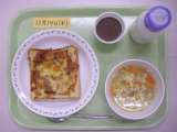 今日の給食は、ピザトースト・牛乳・イタリアンスープ・ココアかんです。 ピザトース...