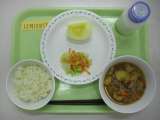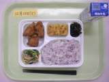今日の給食は、雑穀ごはん・牛乳・韓国風肉じゃが・辣白菜・フルーツ(りんご)です。...