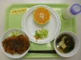 今日の給食は、ソースかつ丼・牛乳・野菜の甘酢かけ・すまし汁・フルーツ(早香)です...