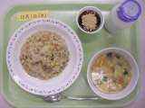 今日の給食は、キムチチャーハン・牛乳・中華風コーンスープ・黒蜜寒天です。 12月...