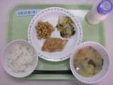 今日の給食は、中華丼 or 麻婆豆腐丼・牛乳・大豆とじゃこの甘辛揚げ・フルーツ(...