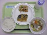 今日の給食は、ごはん・牛乳・さばのみそ煮・おひたし・さつま汁です。 味がしっかり...