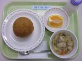 今日の給食は、手作りカレーパン・牛乳・白いんげんの田舎風スープ・フルーツ(デコポ...