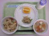 今日の給食は、とりめし・牛乳・豚汁・ごま酢かけ・フルーツ(清見オレンジ)です。 ...