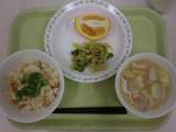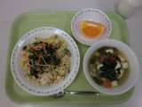 今日の給食は、キムチチャーハン、牛乳、春雨スープ、フルーツゼリーです。 チャー...