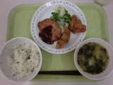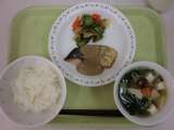 今日の給食は、ごはん、牛乳、魚のごまだれかけ、シャキシャキ野菜、すまし汁です。...