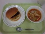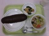 今日の給食は、コロッケパン、牛乳、白いんげん豆のパスタスープです。 コロッケパ...