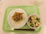 今日の給食は、かきあげ丼、かきたま汁、牛乳です。 かきあげの中には、玉ねぎ、にん...