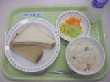 今日の給食は、二色サンド・牛乳・クリームシチュー・コーンサラダです。 二色サンド...