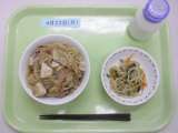 今日の給食は、豚丼・牛乳・野菜のごまだれかけです。 あったかごはんの上に焼き豆腐...