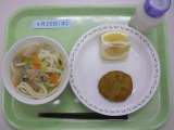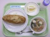 今日の給食は、揚げパン(きな粉)・牛乳・春雨スープ・フルーツ(ニューサマーオレン...
