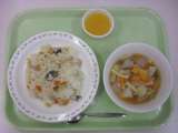 今日の給食は、コーンピラフ、牛乳、ミネストローネ、キャロットゼリーです。 キャロ...