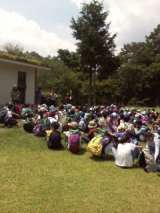 いよいよ日光林間学園が始まりました。大谷川公園での昼食です。時々の様子をこの日光...