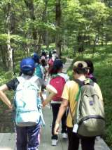 湯本源泉を見学の後、湯ノ湖、湖畔をハイキングしています。中禅寺湖目指してのハイキ...