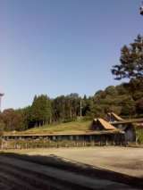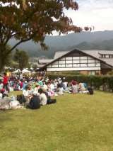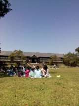 只今、歴史民族資料館前の広場にて、昼食を食べています。青空のもと、空気もおいしい...