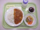 今日の給食は、ハッシュドポークライス・牛乳・イタリアンサラダ・ぶどうゼリーです。...