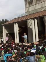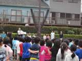 みんな元気です。朝会が始まりました。3日目の朝がやってきまし。眠たそうな顔が集ま...