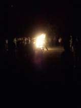 お楽しみのキャンプファイアが始まりました。歌声が夜空に響き渡っています。