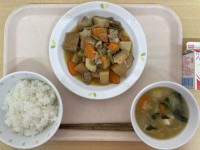 【今日の献立】 牛乳 せたがや大根カレー カントリーサラダ【食材の産地】 米・・・宮城県 鶏肉・・・宮崎県 にんにく・・・青森県 玉ねぎ・・・北海道 人参・・・北海道 大根・・・千葉県 コリアンダー・...