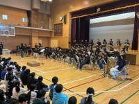 今日(12月5日(金))の朝会の時間に、桜小ブラスバンドのメンバーが、「オーメン...