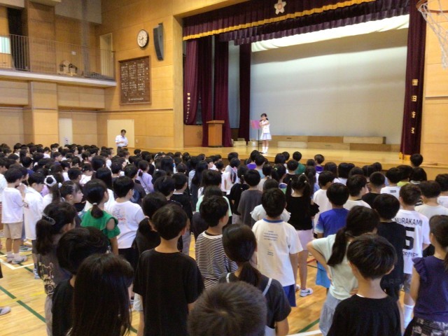 校長先生の話をしっかりきき、これから始まる夏休みに期待を膨らませました。