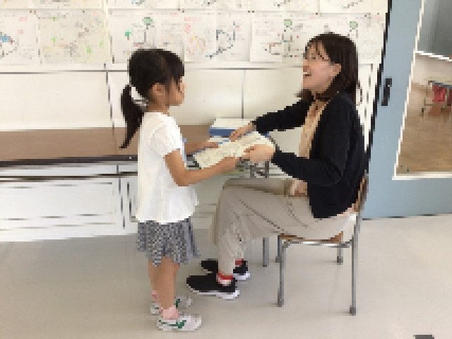 その後、通知表が担任から渡されました。1学期どんな事を頑張ったか、担任と共に振り返りました。