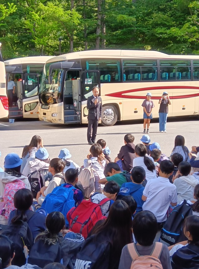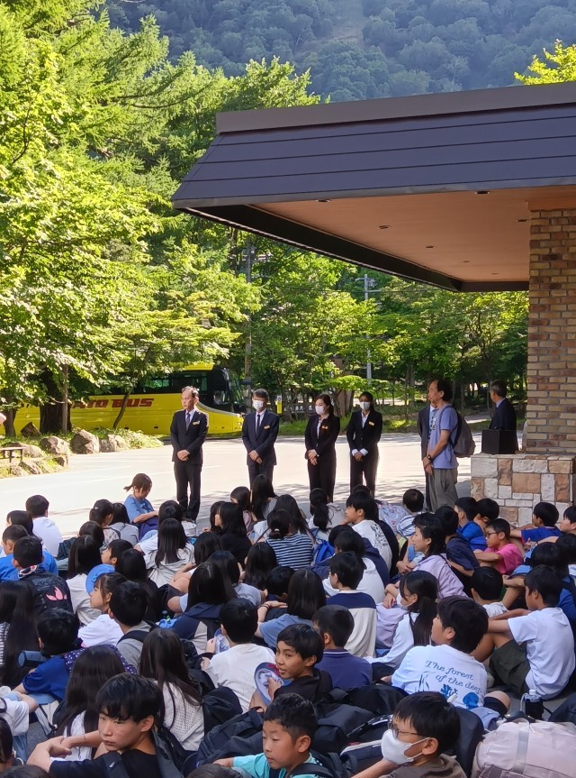 奥日光高原ホテルに到着し、入館式を行いました。3日間お世話になるホテルの方々に挨拶しました。