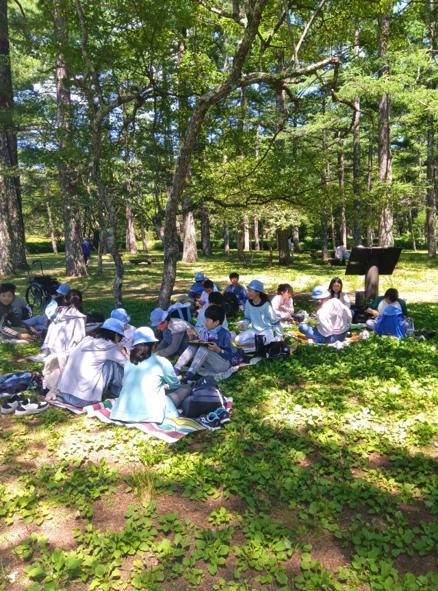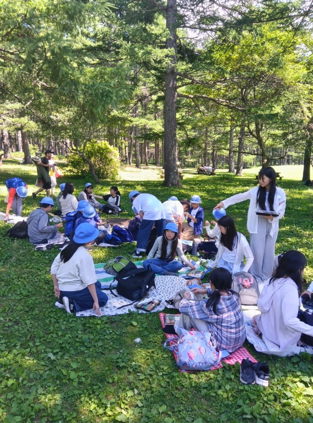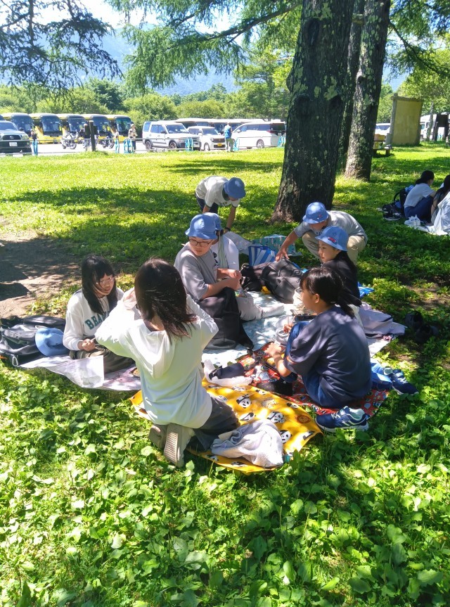 三本松で学年全体写真を撮った後、昼食タイムです。