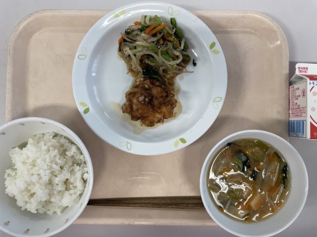 牛乳 有機米ごはん ユーリンチー ナムル 豆腐のとろみスープ