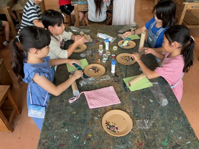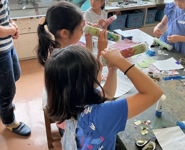 オリジナルの万華鏡、完成品をみんなで見合い、とても嬉しそうでした。