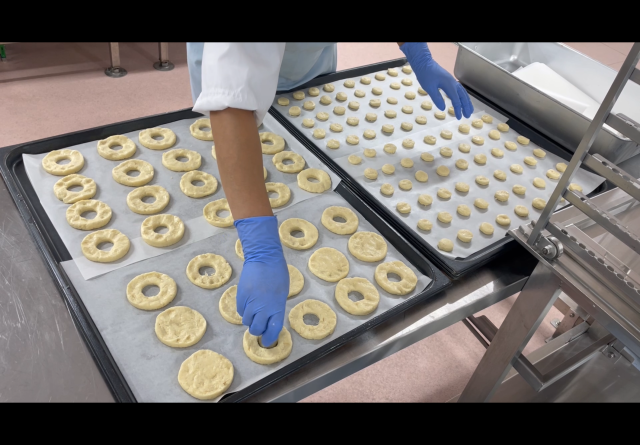 今日の「ドーナツ」も調理員さんの手作りです。一つ一つ作ってくれています。「ドーナツ」だけだと、他の栄養素が足りないので、三色ピラフやミネストローネもしっかり食べてください。どれも美味しいのでたくさん食べてくれると嬉しいです。