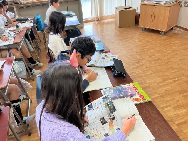 4年生の社会は、東京都では水害に対してどのような取組をしているのだろうという学習課題について学習しています。みんな真剣に考え、意見をノートに書いたり、友達の考えを聞いています。