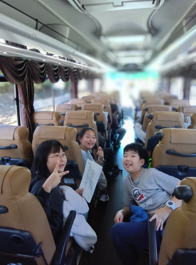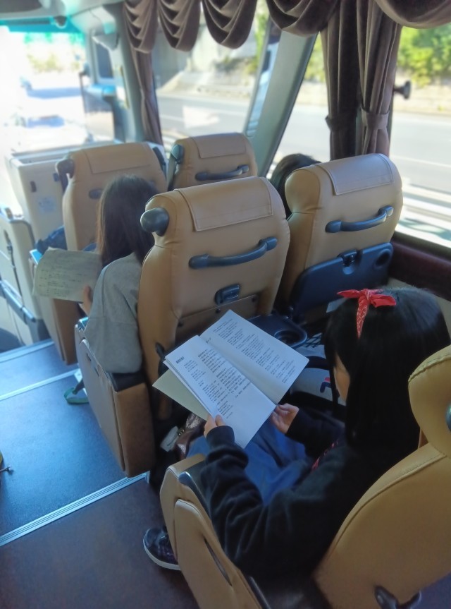 バスの中では、バスレク係が準備したクイズやカラオケをして過ごしています。