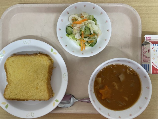 牛乳 フレンチトースト チキントマトシチュー フレンチサラダ