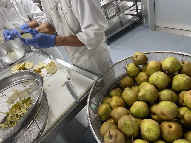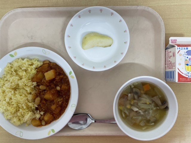 牛乳 チリビーンズライス キャベツのスープ ラ・フランス