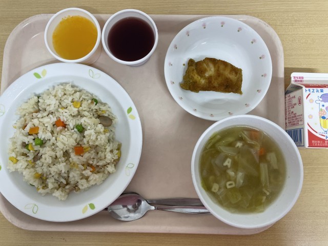 牛乳 三色ピラフ タンドリーチキン ABCスープ セレクトデザート(みかんゼリーorぶどうゼリー)