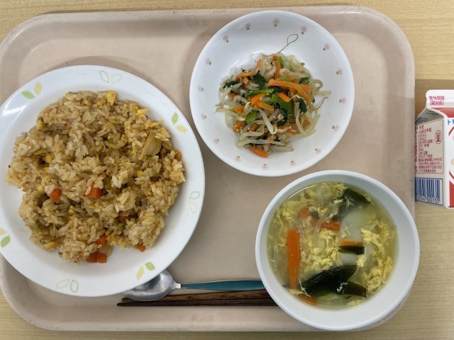 牛乳 キムチチャーハン ナムル トックスープ